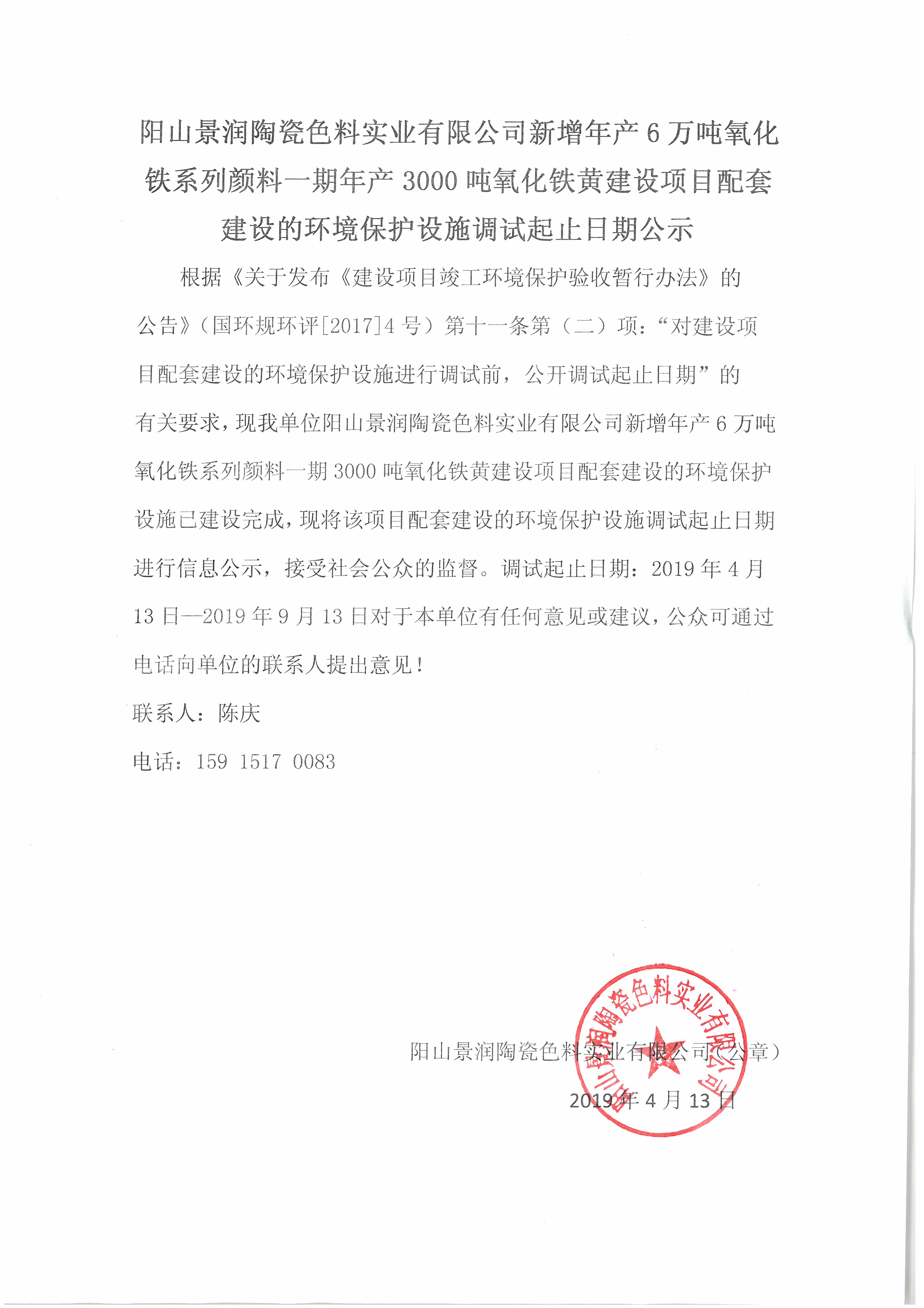 下一頁(yè): 關(guān)于陽(yáng)山景潤(rùn)陶瓷色料實(shí)業(yè)有限公司新增年產(chǎn)6萬(wàn)噸氧化鐵系列顏料一期年產(chǎn)3...